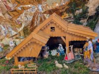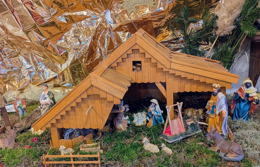 04.12.2025 UB – In diesem Jahr haben wir eine Vielzahl von Krippen zusammengetragen und vom 22. Sept. bis 08. Dez. (Wochenendes) ausgestellt. Es waren Krippen in Papierform, als Briefmarken, kleine (in einer Wallnuß oder in einer Miniflasche) bis zu lebensgroßen Figuren. Es sind gehäkelte Figuren, Figuren aus Porzellan, Ton, Holz und vielen anderen Materialien. Krippen für Kinder zum Spielen, Sammelkrippen, Reisekrippen usw. Sie stammen aus vielen Teilen der Erde, vorrangig aus unserer Region. Unser Bild zeigt einen von Liborius Geers gefertigten Stall aus den 1990er Jahren. Insgesamt sind über 100 Krippendarstellungen in der Zehntscheune zu sehen gewesen.