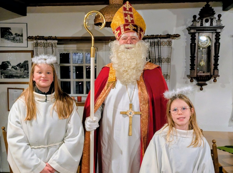 05.12.2025 UB – Am 6. Dezember ist der Tag des Heiligen Nikolaus. Tags zuvor warten die Kinder schon sehnsüchtig auf den Heiligen Mann. Am diesem Vortages zum Nikolaustag traf man sich in der St. Jodocus Kirche Börger. Dort begrüßte man den Nikolaus. Nach deinem kurzen Wortgottesdient zog man begleitet von der Jugendfeuerwehr mit Fackeln zum Heimathaus. Die Hümmlinger Musikanten unterstützten diesen stimmungsvollen Zug und das Treffen bei bestem Wetter. Über 200 Kinder, Eltern und Angehörigen nahmen teil. Der Nikolaus ließ es sich auch nicht nehmen, im St. Josefstift vorbeizuschauen. Schon am Vormittag war der Nikolaus in der Schule und bei den Kleinen der Kindergärten. Auf dem Heimathof sorgten die Hümmlinger Musikanten mit ihrer Musik für wunderbare adventliche Stimmung. Fotos mit dem Nikolaus und seinen Engeln, Glühwein & Punsch vom Juki und ein Stutenkerl für alle rundeten den Abend ab.