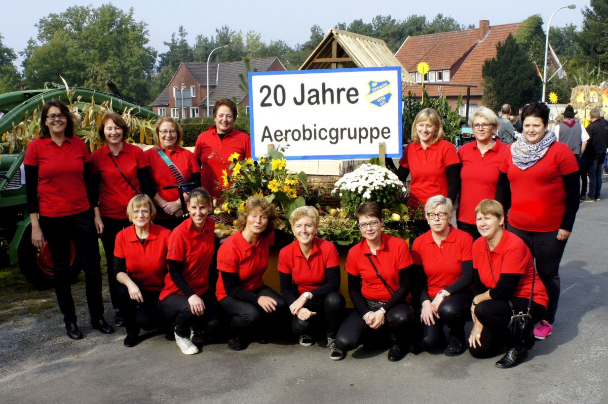 04.10.2015 UB – Mit einem Fest für die Kinder und einer zünftigen Country-Fete begann gestern, Samstag unsere Kaermse 2015. Bei bester Stimmung, gutem Wetter und klasse Musik gab es Unterhaltung vom Feinsten. Die Stäweldancer aus Börger und weitere Gruppen (aus Werlte u. Pbg) unterhielten die Besucher bis weit in die Nacht. Heute um 13.30 Uhr formierten sich die Wagen zum Festmarsch durch den Ort. Mit von der Partie war die Gymnastikgruppe des DJK Sportverein Eintracht Börger (hier auf dem Bild). Auf dem Festplatz herrscht momentan Erntedanktreiben. Morgen ist Viehmarkt (Nationalfeiertag in Börger).