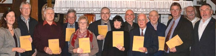 29.11.2015 UB – Der Heimatverein Börger hatte zu gestern zum Grünkohlessen eingeladen. Bei vollem Hause (70 Gäste) wurde im vorweihnachtlich geschmücktem Heimathaus von den Arbeitskreisleitern des AK Geschichte, Bernd Gebkenjans und Hermann Ubbenjans die neue Jahresschrift vorgestellt. Im Vorwort wird von Bernd erklärt was „Heimat“ bedeuten kann und das der Begriff für jeden eine andere positive Bedeutung hat. Das galt für die Soldaten des 1. Weltkrieges, die vor 100 Jahren in den Krieg ziehen mußten genauso, wie für unsere Neubürger der letzten Jahrzehnte, und auch für Flüchtlinge von heute, die eine neue Heimat suchen müssen. Und auch für uns alteingesessene Bürger hat der Begriff „Heimat“ eine wichtige, positive Bedeutung.