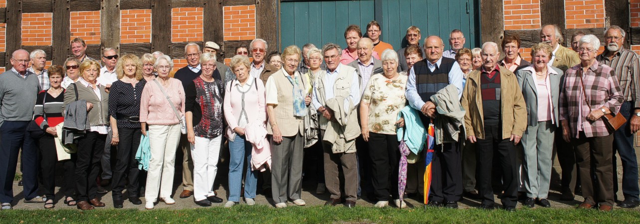 Gruppe Heimatverein Börger 29.09.2014 UB – Wie in jedem Jahr, startete der Heimatverein nach dem Sommer einen Tagesausflug. In diesem Jahr war man am 28. Sept. 2014 um 13 Uhr, spät im Termin. Es war wieder eine feine Fahrt mit dem Bus der Firma Sebers diesmal zum Museumsdorf Cloppenburg. 42 Mitglieder fuhren mit. Nach einer Kaffeetafel in der Dorfschänke der 25 Hektar großen Anlage gab es eine Führung. Hauptaugenmerk beim Museumsbesuch in Cloppenburg waren die 60 Häuser und die Darstellung des Inventars und der Disponate, weil man man im nächsten Jahr die heimatkundliche Sammlung in der Zehntscheune auf dem Heimathof Börger präsentieren möchte und man noch Ideen für die Gestaltung der Ausstellung sucht. Nach einer fachkundigen Führung durch Mitarbeiter des Museums gewann man bei einem punktuellen Rundgang, einen Überblick von Machbaren. Unsere mitgereisten Baufachleute konnten Ideen für die Außengestaltung sammeln und wertvolle Informationen mitnehmen. Mit einem gemeinsamen Abendessen in Varrelbusch endete die harmonische Fahrt bei bestem sonnig-warmem Frühherbstwetter, kurz vor Sonnenuntergang.
