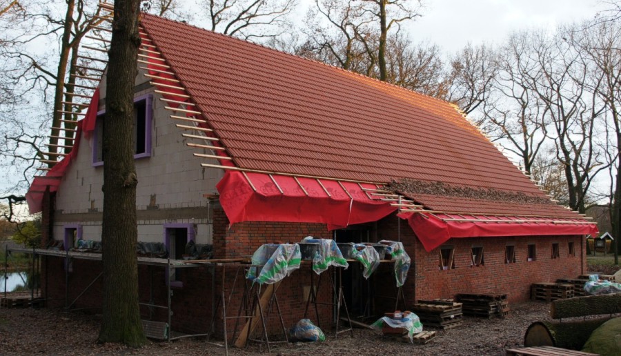 Januar 2015 am Heimathof Börger 02.02.2015 UB – Seit einigen Wochen ruhen die Arbeiten auf der Baustelle des Heimatverein Börger. Wir hoffen, das wir Ende März 2015 die Bauarbeiten weiterführen können, und der Bau dann bis Herbst weiter vollendet wird. Wenn die Außenhaut (Klinker) und das Dach fertig sind, müssen die Fenster eingebaut werden. Dann soll das Heimathausumfeld wieder her gerichtet werden. Dazu bedarf es aber noch Unterstützung durch vieler Leute Hände und Mittel. Anfang 2014 sind wir mit notwendigem Arbeiten angefangen (Teichrestauration) und haben das Mögliche ins Auge gefasst (Raum für Museum und Archiv) und plötzlich ist etwas Unmögliches (Arbeitseinsatz der Wandergesellen) ingang gesetzt und so ist der Grundstock gelegt und der Rohbau entstanden.