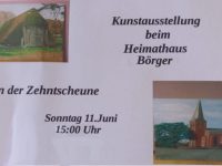 Im Obergeschoß haben wir eine Bilderausstellung der Bilder von Arvidas Zdanavicius aufgebaut. Dieser Künstler arbeitete in den 1990er Jahren bis ca 2010 im Rahmen der Litauenhilfe in Börger und hat viele Hümmlinger Motive, aber auch Stillleben in verschiedenen Stilen, gefertigt. Diese Bilder sind in Ausstellungen Meppen, Aselage und anderen Orten ausgestellt worden. Weit über 100 Bilder haben damals den Besitzer gewechselt. Der Heimatverein erwarb eine Reihe von Bildern dieses Künstlers. Untergebracht und betreut wurde er seinerzeit von Hermann Schmitz. Dieser wird heute auch in der Zehntscheune auf dem Heimathof Börger anwesend sein und Auskunft geben können.
